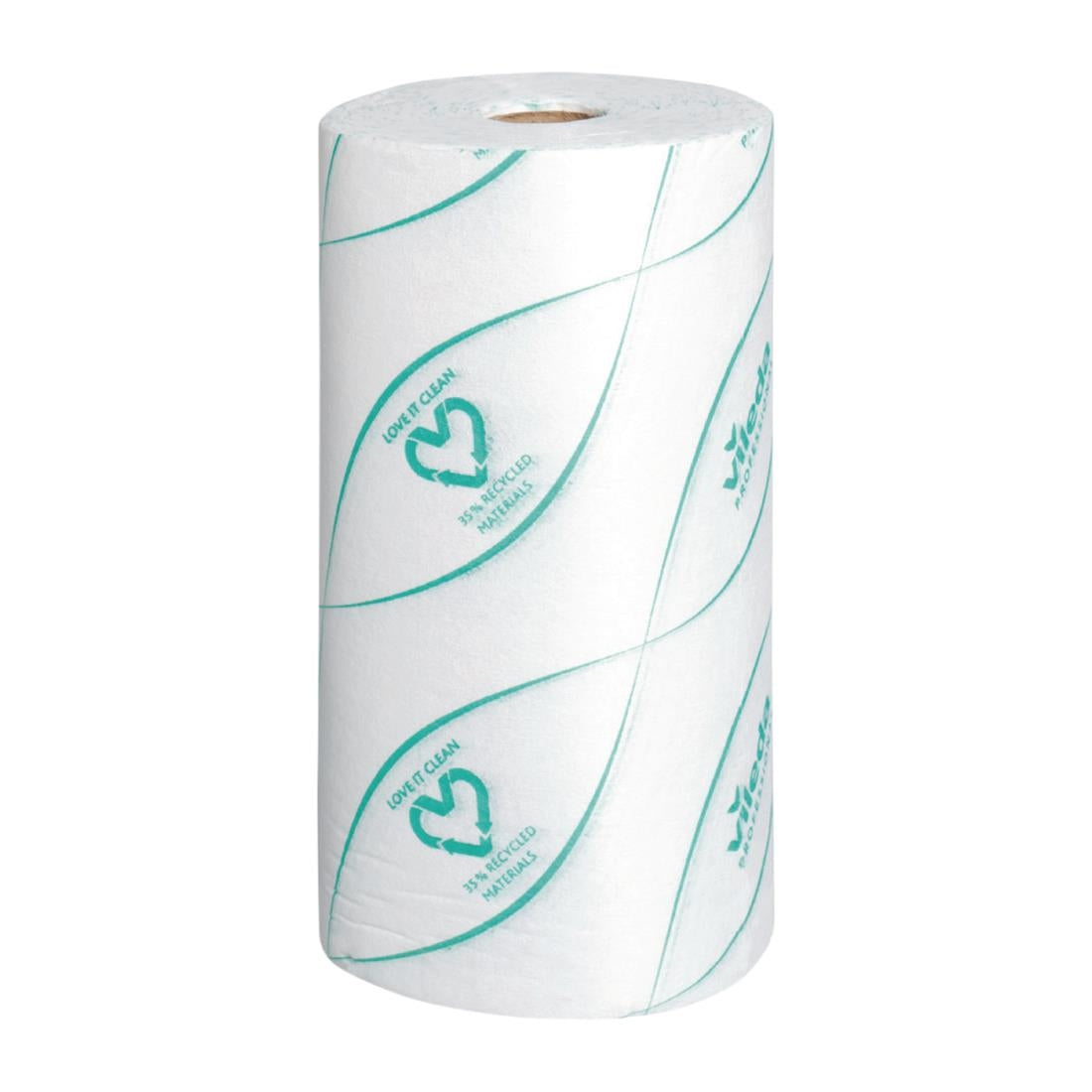 Vileda r-MicronSolo green cleaning cloth is labelled with their "Love It Clean" logo which highlights that all of Vileda's professional products made from recycled materials. Cleaning supplies of this range are part of Vileda's ambition to create a more sustainable future by reducing waste and giving materials a second life.
