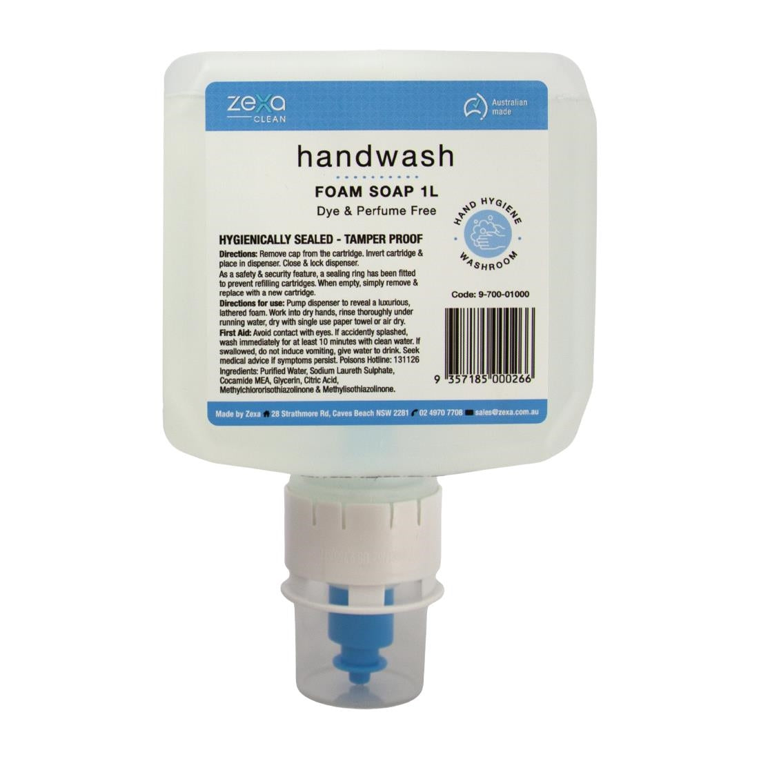 Zexa Handwash is a colour and perfume free, foaming hand cleanser that is designed to eliminate bacteria on the skin. It is highly effective against a broad spectrum of microorganisms and suitable for all situations where reducing the possibility of microbial cross-contamination is important.