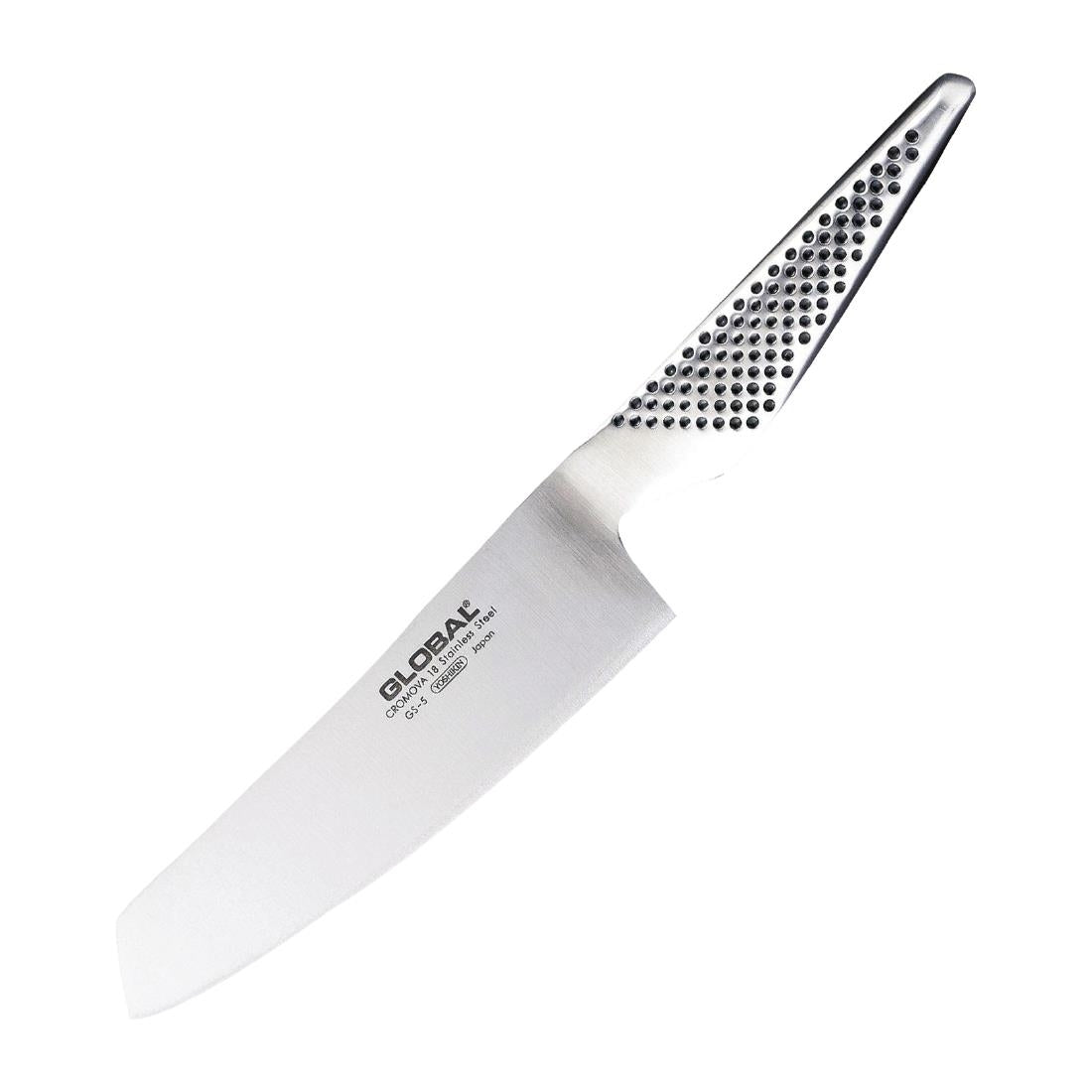 The GS-5 is the little brother of the G-5 vegetable chopper, with the same shape of blade in a smaller proportion. These knives take their inspiration from Japanese Usuba (Vegetable Knives), the relatively flat parts of the blade are designed to chop through fruit and vegetables and come into full contact with the chopping board and give a clean cut. The front of the blade is more curved like a chef's knife, to allow the knife to be rocked gently forward after each cut and encourage correct technique.