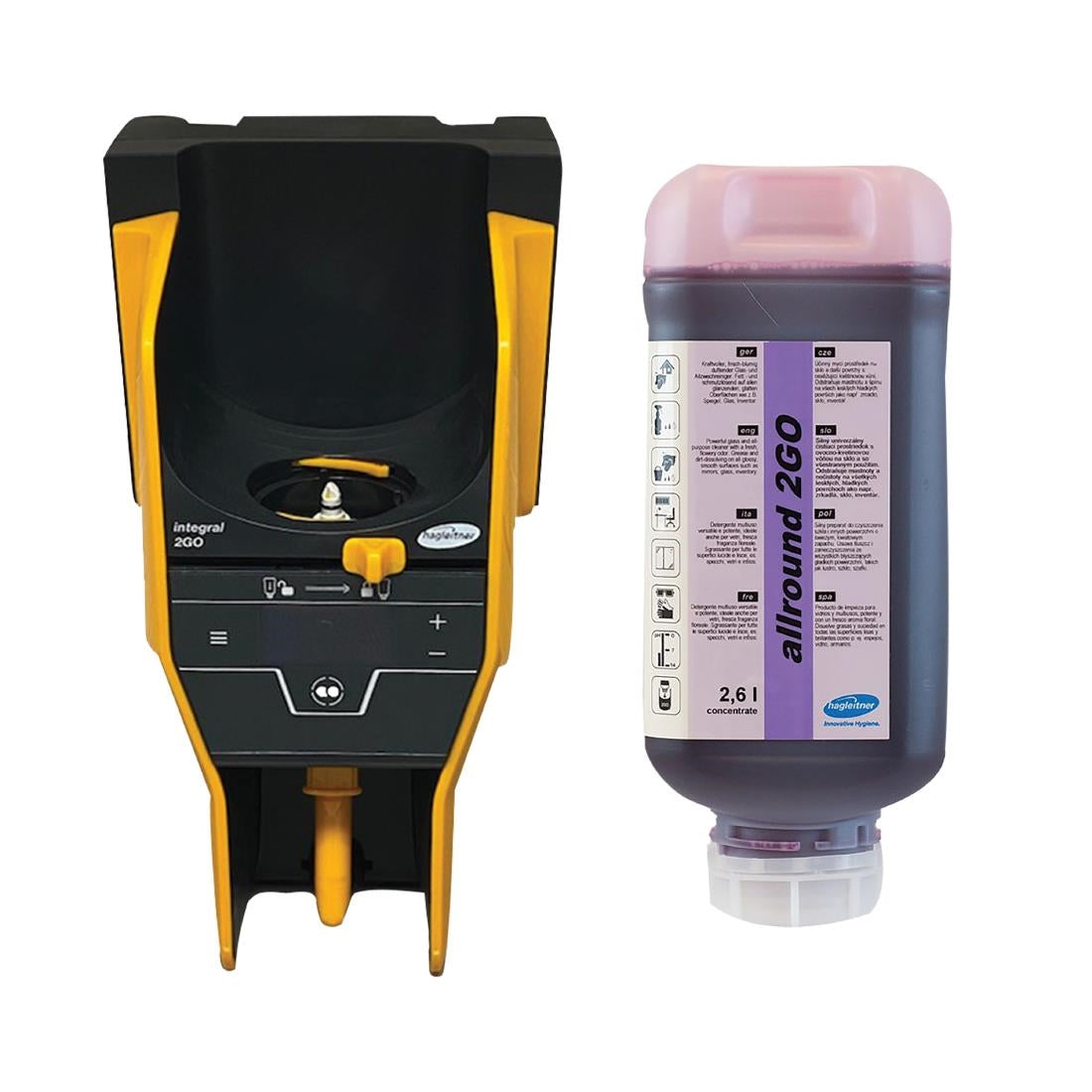 Want to manage your multipurpose cleaner efficiently to get maximum performance and value? Using this Allround 2GO starter kit from Hagleitner will transform the way you carry out your cleaning duties. You'll get two bottles of the grease and dirt-dissolving cleaner, as well as the innovative dispenser and installation kit. Allround 2GO will tackle all that everyday dirt and grime, and is perfect for daily cleaning and maintenance of all glossy, smooth surfaces such as mirrors and glass. Leaving behind a pleasant flowery scent, it ensures your surfaces smell as fresh as they look. By using the dispenser, you'll be sure to get exactly the right doses to deliver top performance alongside long-lasting usage. With fewer refills required, each bottle goes that little bit further to save you even more money.