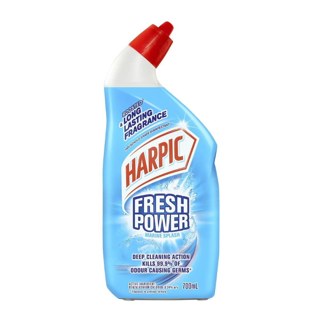 Harpic Fresh Power Marine Splash is a powerful toilet cleaner with a refreshing marine scent. Its household-grade formula effectively tackles stains and leaves the toilet bowl clean and hygienic. The deep cleaning action kills 99.9% of odour-causing germs, including E. coli. Its anti-stain technology provides long-lasting protection, ensuring your toilet stays clean and hygienic.