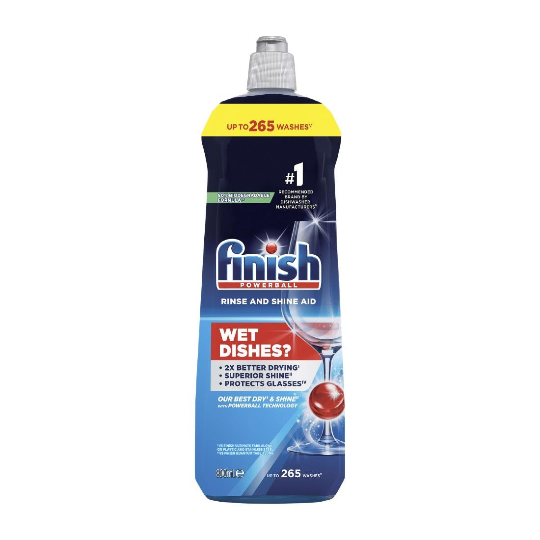 Say goodbye to wet dishes and cloudy glasses with Finish Rinse & Shine Aid. Featuring Powerball Technology, this rinse aid delivers drier, shinier dishes compared to standard rinse aids. Its 90% biodegradable formula combats water spots and oily residues, leaving your dishes with a superior shine. The rinse aid also protects glassware from cloudiness, helps plastics dry faster, and lasts for up to 165 washes (based on 3ml per wash).
