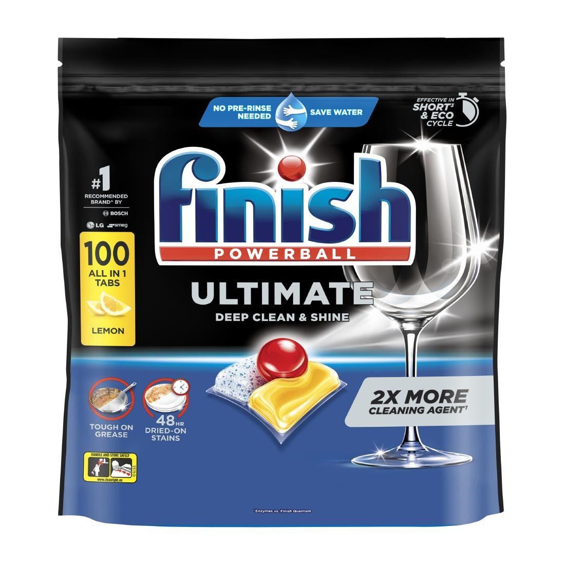 Finish Ultimate Deep Clean & Shine dishwasher tablets are tough on grime. Powered by Powerball Technology, their advanced formula effectively breaks down all types of food residues, including stubborn 48-hour dried-on stains, without the need for pre-rinsing.