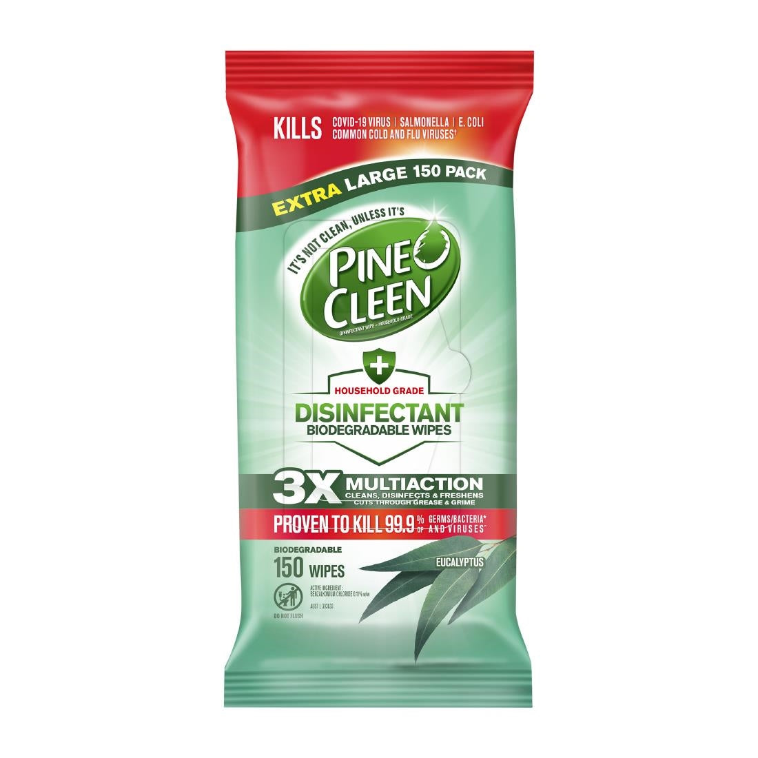 Pine O Cleen Multipurpose Wipes provide powerful cleaning for over 100 surfaces. They clean, disinfect and freshen while leaving behind a refreshing scent. Proven to eliminate 99.9% of germs, bacteria, and viruses, including COVID-19, these wipes help ensure a hygienic and safe environment. Biodegradable and household-grade, they come in an extra-large, resealable pack of 150, offering a convenient and dependable solution for everyday cleaning.