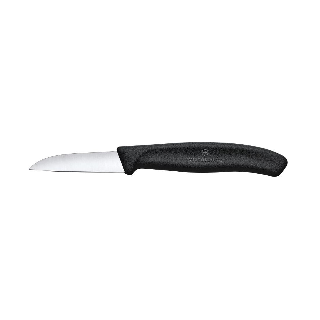 A lightweight, sharp, and nimble small 6cm paring knife from Victorinox is ideal for all those intricate preparation tasks you can't do with a larger chef knife. The pointed tip lets you pierce fruit and vegetables with ease, while the serrated blade saws through food with minimal pressure to create the neatest slices. This knife is dishwasher safe giving you a quick and hygienic clean when you are finished using.
