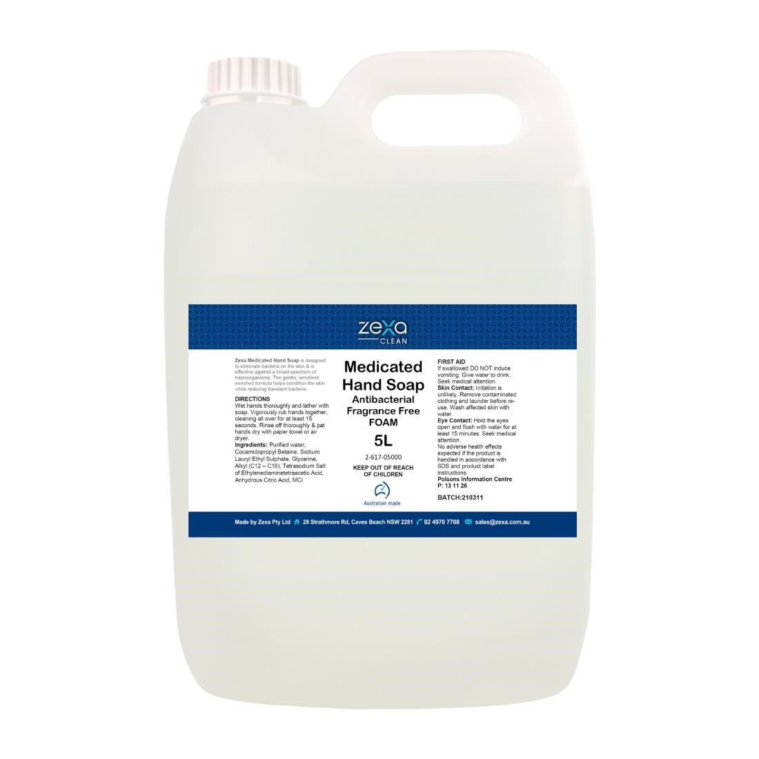 Zexa Medicated Hand Soap is a fragrance free, anti-bacterial high-foaming hand cleanser that is designed to eliminate bacteria on the skin. It is highly effective against a broad spectrum of microorganisms and suitable for all situations where reducing the possibility of microbial cross-contamination is important.