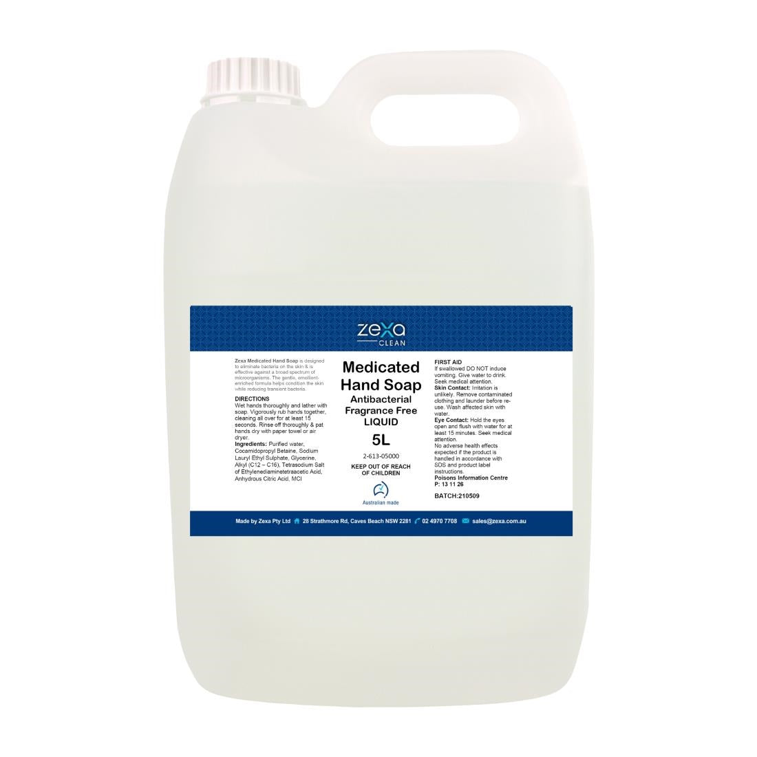 Zexa Medicated Hand Soap is a fragrance free, anti-bacterial liquid hand cleanser that is designed to eliminate bacteria on the skin. It is highly effective against a broad spectrum of microorganisms and suitable for all situations where reducing the possibility of microbial cross-contamination is important.